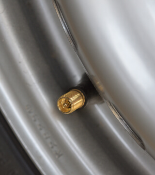 空気を入れる部分(バルブ)を新しいものに交換する作業です。バルブは劣化すると空気漏れの原因になるため、タイヤ交換時にあわせての交換がおすすめです。